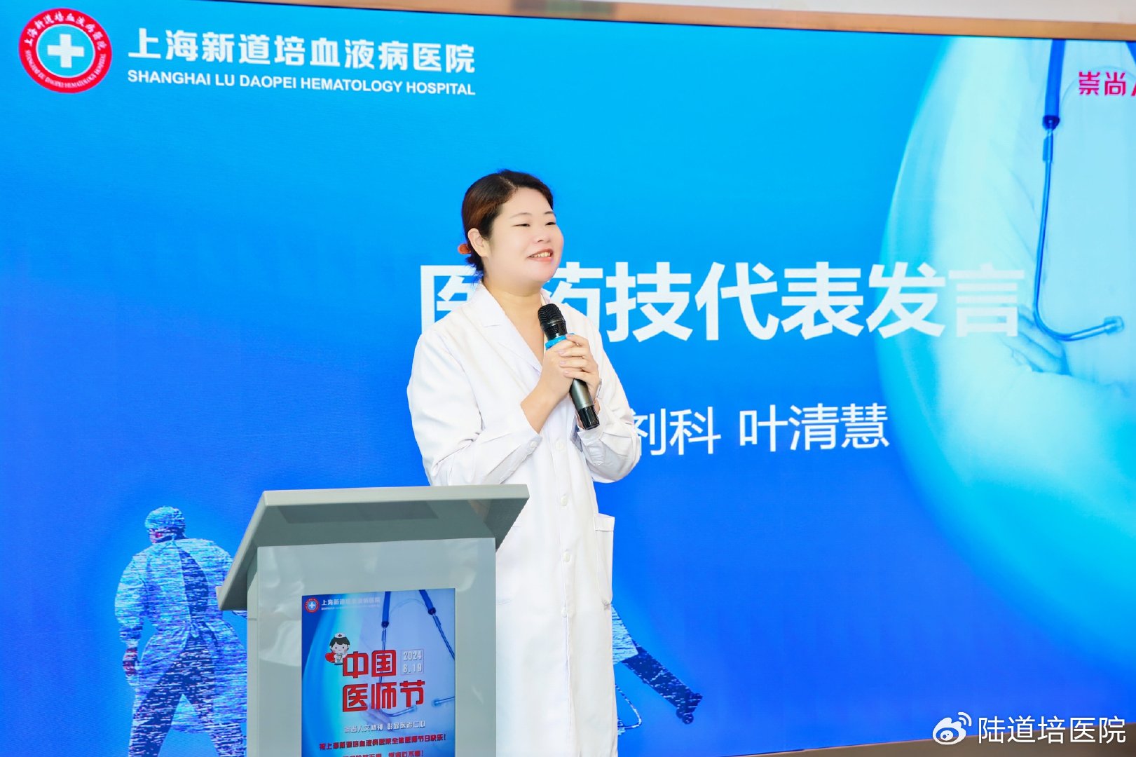 王院長(zhǎng)回顧了醫(yī)院的建設(shè)發(fā)展歷程,贊揚(yáng)了全體醫(yī)技人員在上海新道培血液病醫(yī)院建設(shè)過(guò)程中所付出的辛勤努力和無(wú)私奉獻(xiàn)。他表示,醫(yī)師節(jié)不僅是醫(yī)者的節(jié)日,更是對(duì)醫(yī)者精神的傳承和弘揚(yáng)。