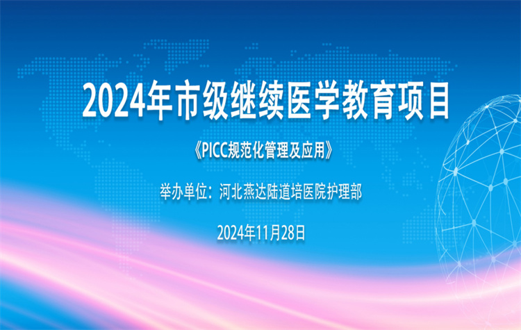 2024年11月28日,由燕達陸道培醫(yī)院護理部靜脈輸液治療專業(yè)組承辦的2024年市級繼續(xù)醫(yī)學教育項目。 【詳情】