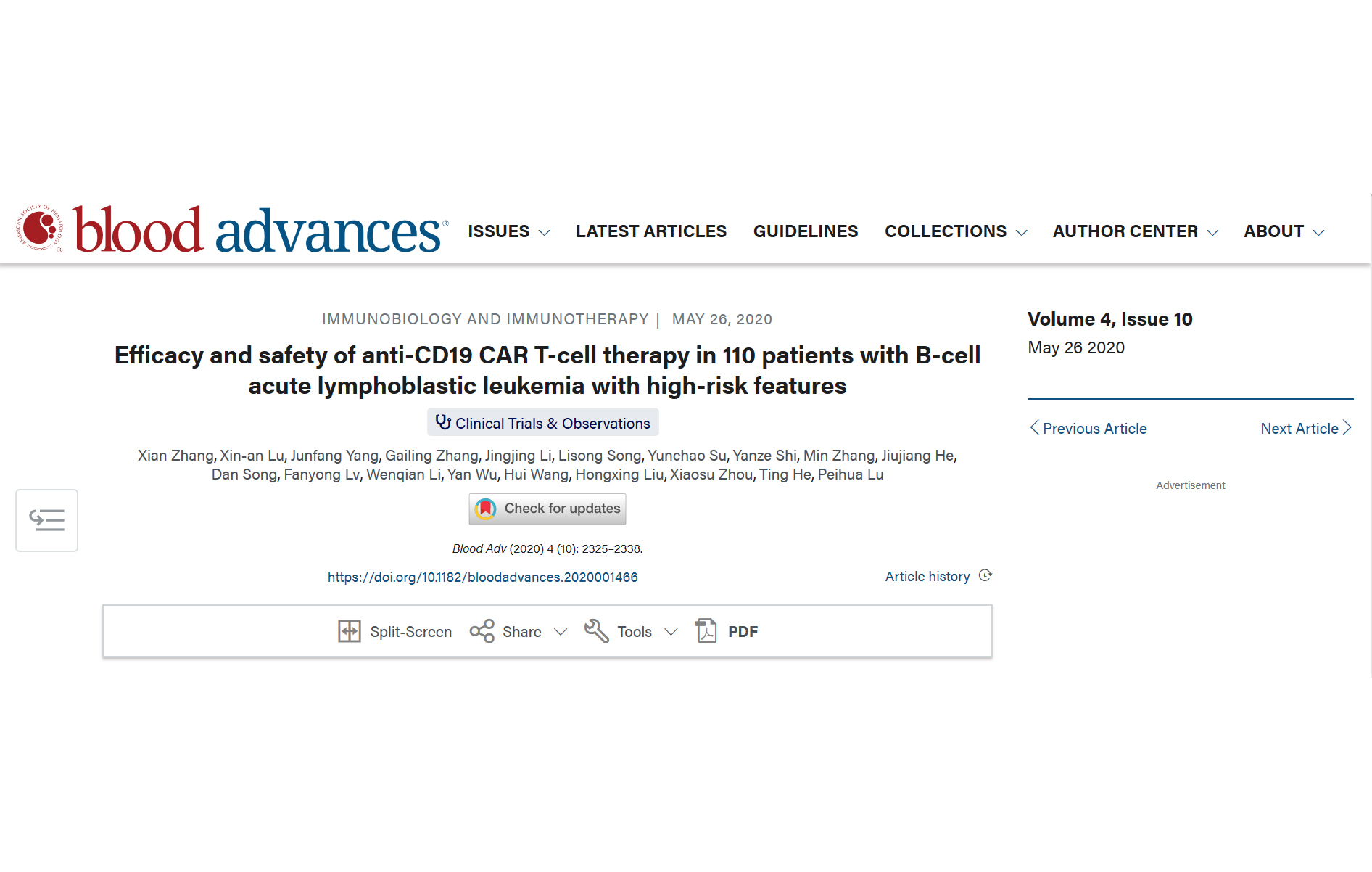 2020年5月26日,國際血液學(xué)期刊Blood Advances雜志發(fā)表了陸道培醫(yī)學(xué)團(tuán)隊張弦主任為第一作者 【詳情】