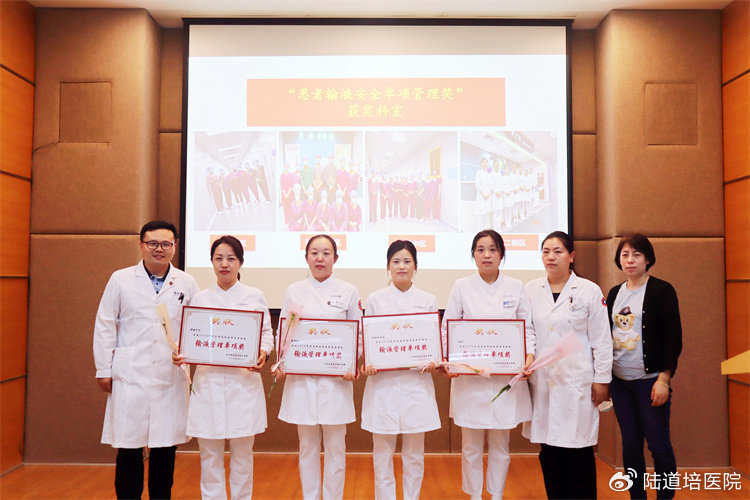 造血干細胞移植科魏志杰主任宣布"患者輸液安全單項組織管理獎"獲獎名單,并為獲獎科室頒發(fā)獎狀。(此獎項是在2024年初由護理部組織的"靜脈輸液核心小組“討論并決定開展護理人員“實施中心靜脈輸液接頭消毒"的檢查工作,包括手衛(wèi)生、輸液接頭消毒規(guī)范和消毒時間的三項檢查,根據(jù)2024年第一季度各科室護士長組織科室靜脈輸液兼職人員檢查工作情況作為評選依據(jù)。)