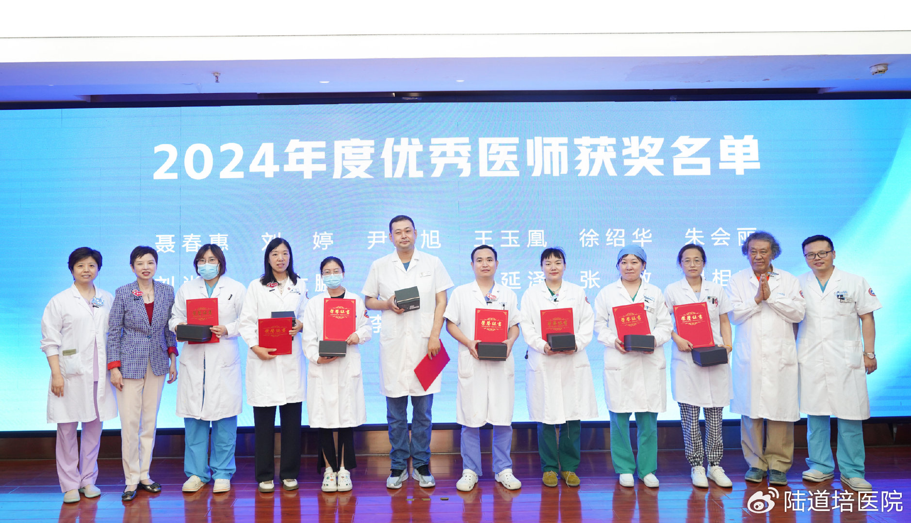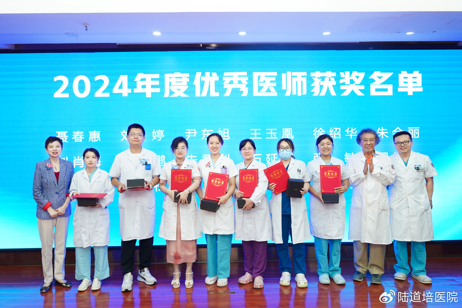 隨后,醫(yī)務(wù)部主任趙薇宣布了2024年優(yōu)秀醫(yī)師獲獎(jiǎng)名單,并由黃曉燕院長(zhǎng)、王景文院長(zhǎng)、孫于謙主任頒發(fā)了證書(shū)和獎(jiǎng)品。