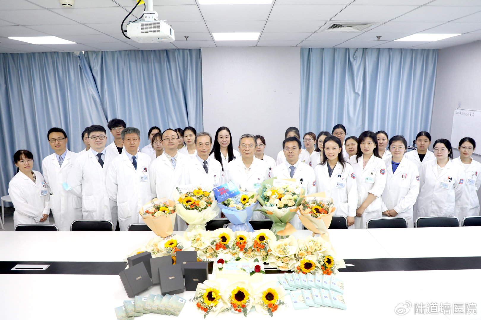 會(huì)議結(jié)束后,順義院區(qū)醫(yī)務(wù)部主任趙薇、醫(yī)院辦公室主任鄭偉、宣傳部主任白佳瓚等走入病區(qū)(科室),送去鮮花、蛋糕和節(jié)日禮物,表達(dá)了對(duì)全體醫(yī)師崇高的敬意和親切的問(wèn)候。